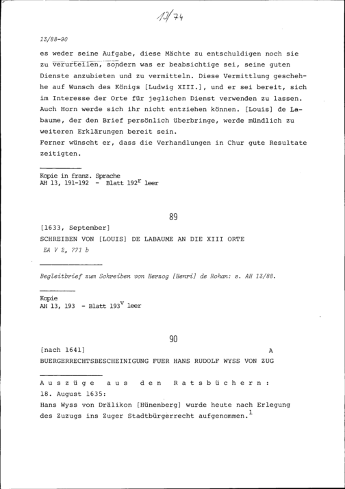 Schreiben von Henri de Rohan, Herzog, an die Dreizehn Orte