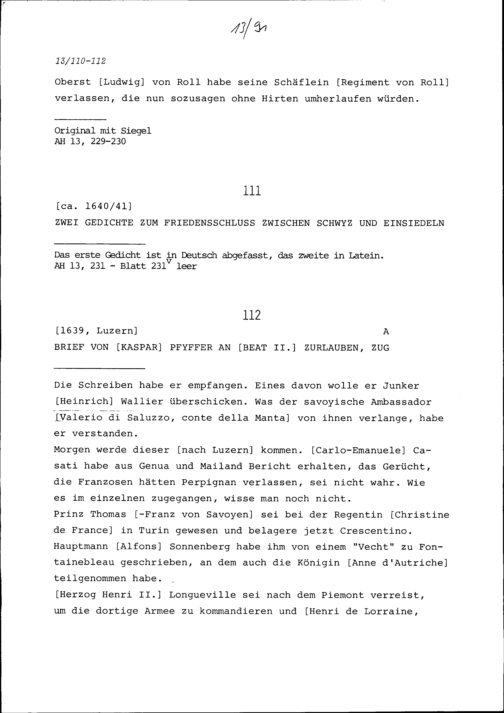 Schreiben von Johann Balthasar Honegger an Beat II. Zurlauben, Zug
