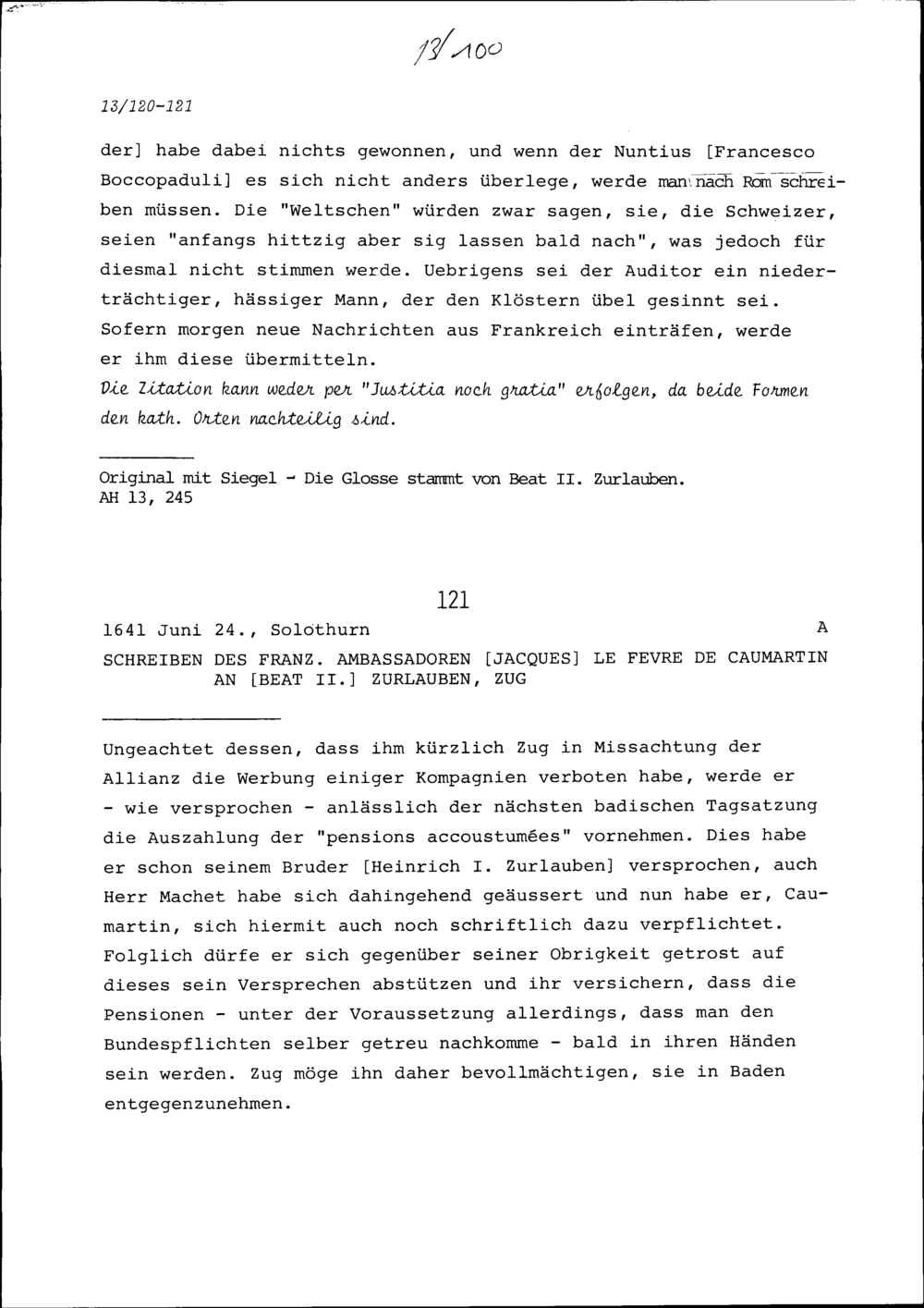 Schreiben von Kaspar Pfyffer, Venner, an Beat II. Zurlauben, Zug
