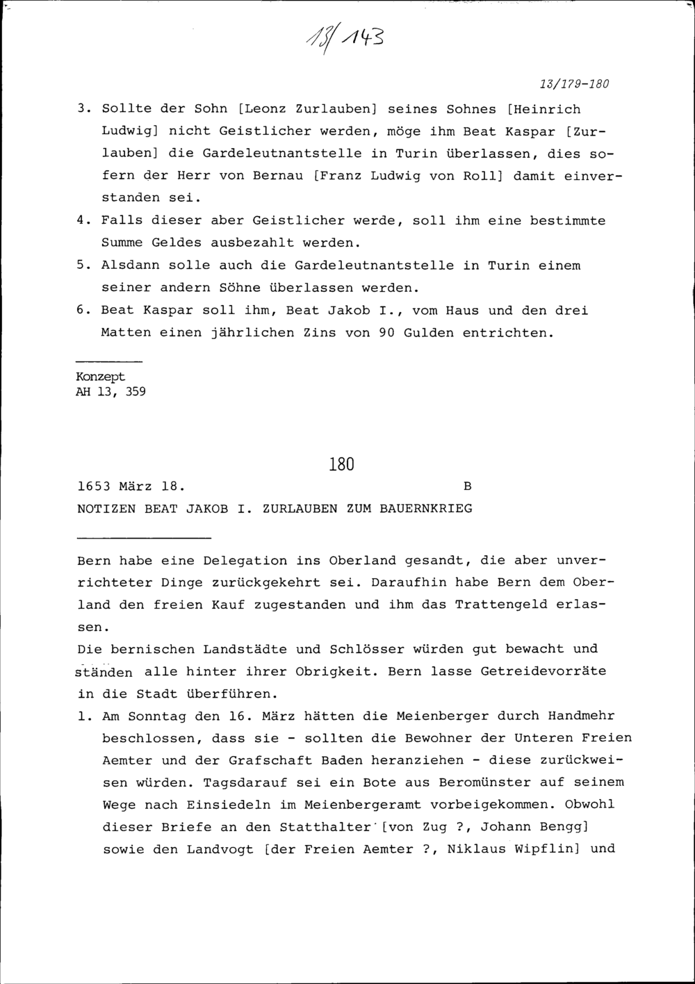 Bericht von Beat Jakob I. Zurlauben über die Besetzung der Landschreiberstelle in...