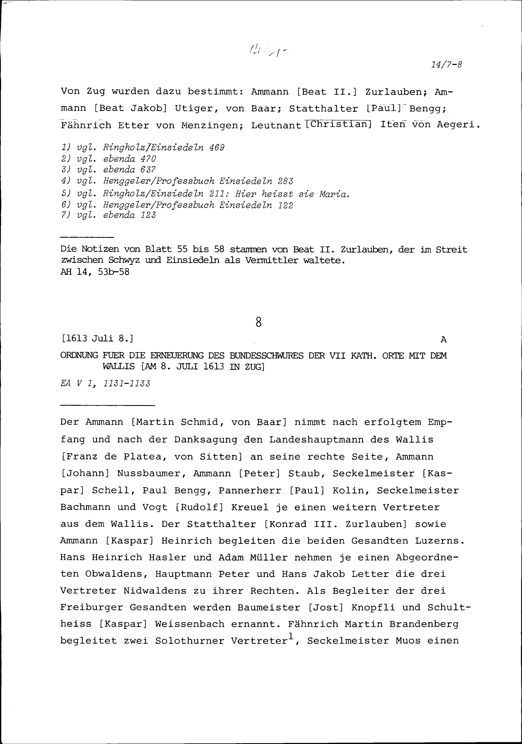 Notiz über die Gründung des Klosters Einsiedeln und dessen Auseinandersetzungen mit Schwyz von 838 bis 1640