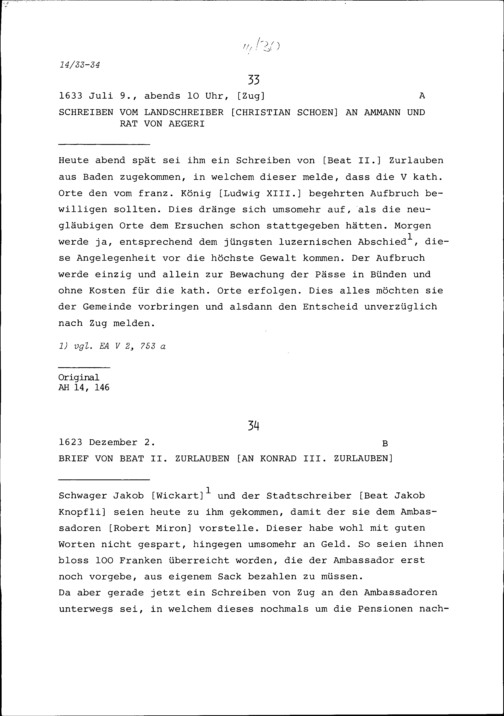 Schreiben von Beat II. Zurlauben an Konrad III. Zurlauben