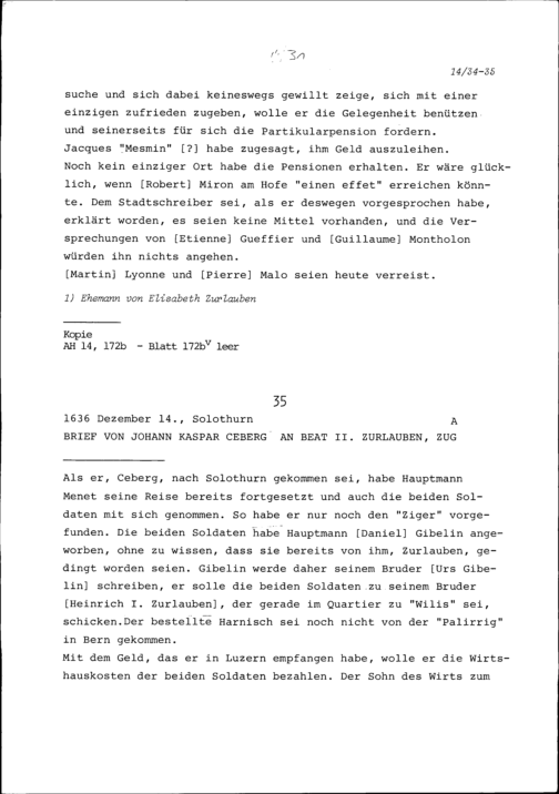 Schreiben von Beat II. Zurlauben an Konrad III. Zurlauben