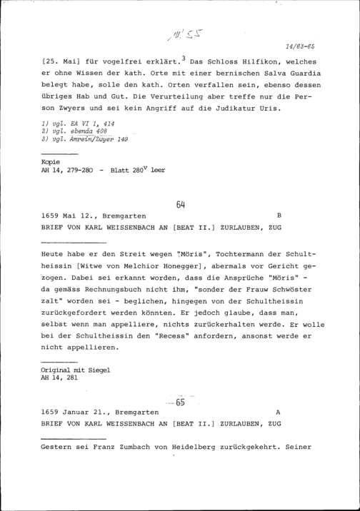 Schreiben von Karl Weissenbach an Beat II. Zurlauben, Zug