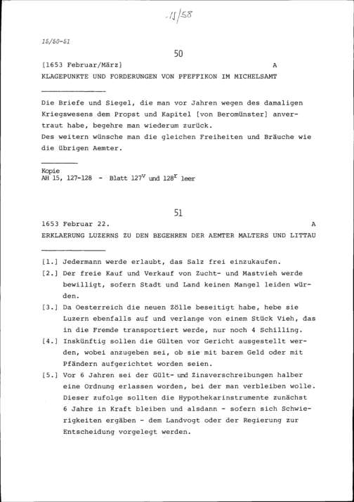 Erklärung Luzerns zu den Begehren der Ämter Malters und Littau