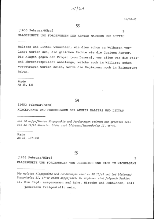 Klagen und Forderungen von Oberkirch und Eich im Michelsamt
