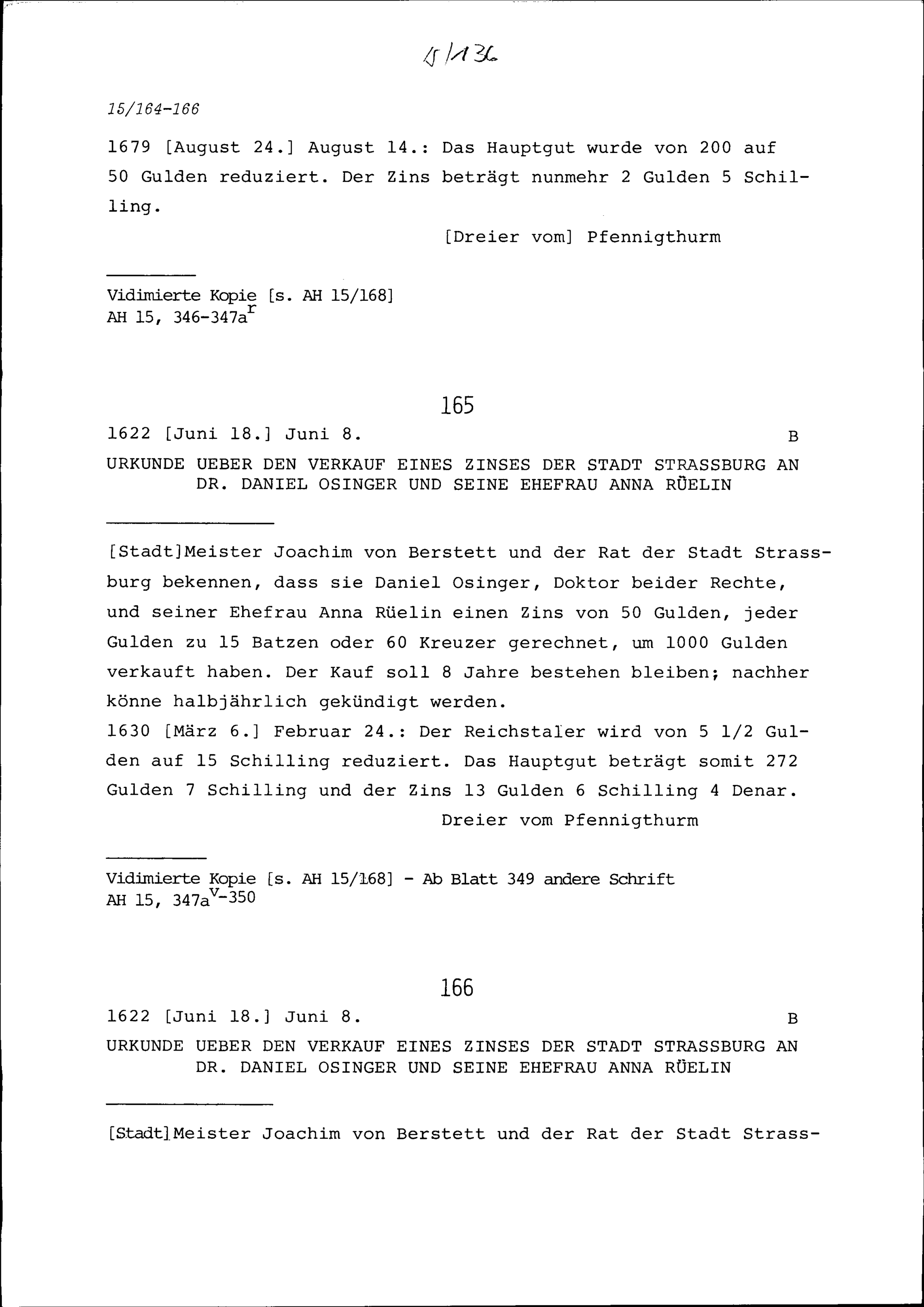 Urkunde über den Verkauf eines Zinses der Stadt Strassburg an Eva Susanna Glaser
