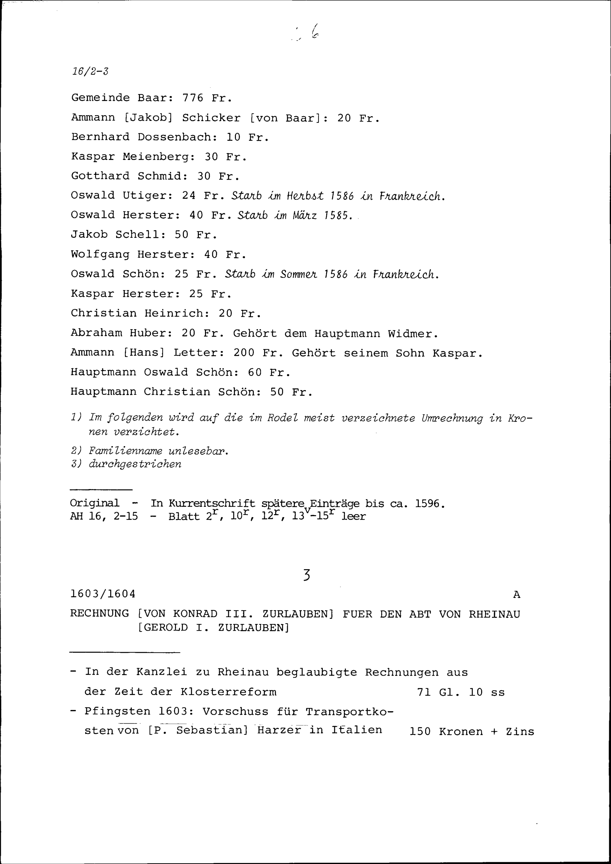 Pensionenrodel von Stadt und Amt Zug