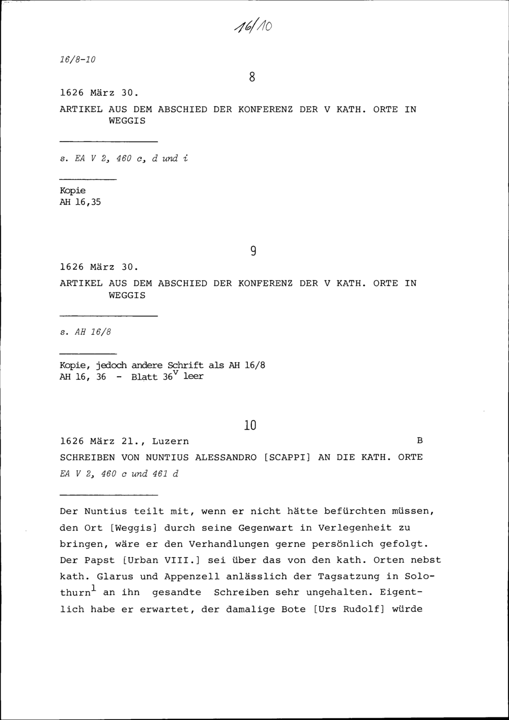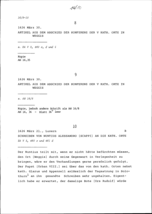 Abschied der Konferenz der Fünf Katholischen Orte in Weggis (Auszug)