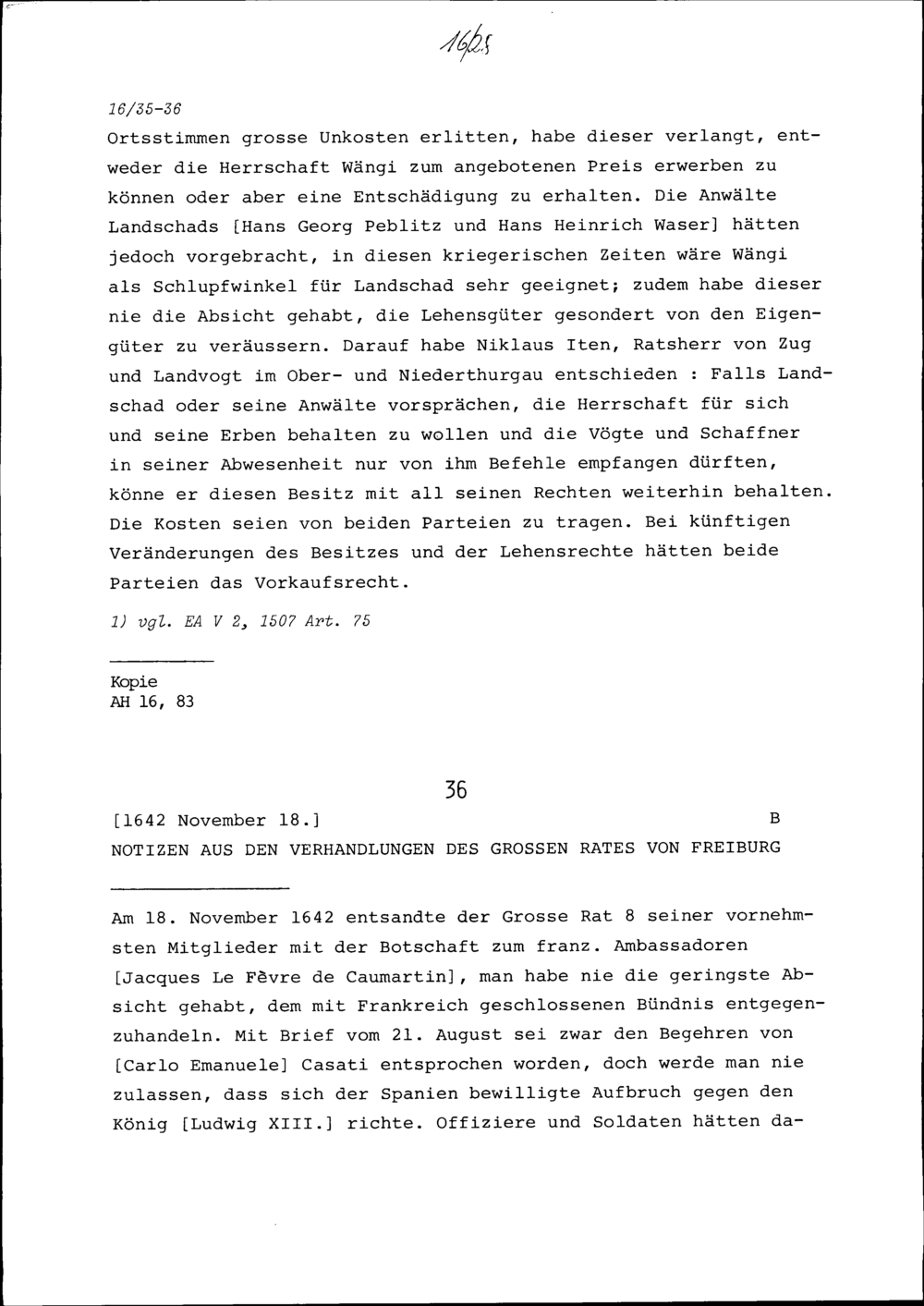 Rezess der Oberthurgauischen Kanzlei in Frauenfeld über den Streit zwischen Pius Reher, Abt von Sankt Gallen, und Friedrich Landschad von Steinach um den Kauf der Herrschaft Wängi