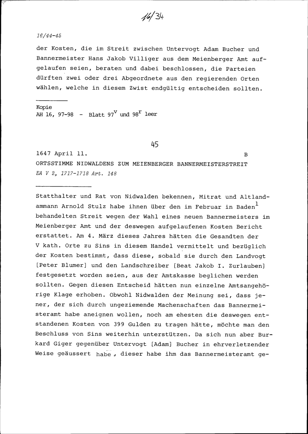 Rezess von Johann an der Allmend, Unterschreiber von Luzern, über den Meienberger Bannermeisterstreit