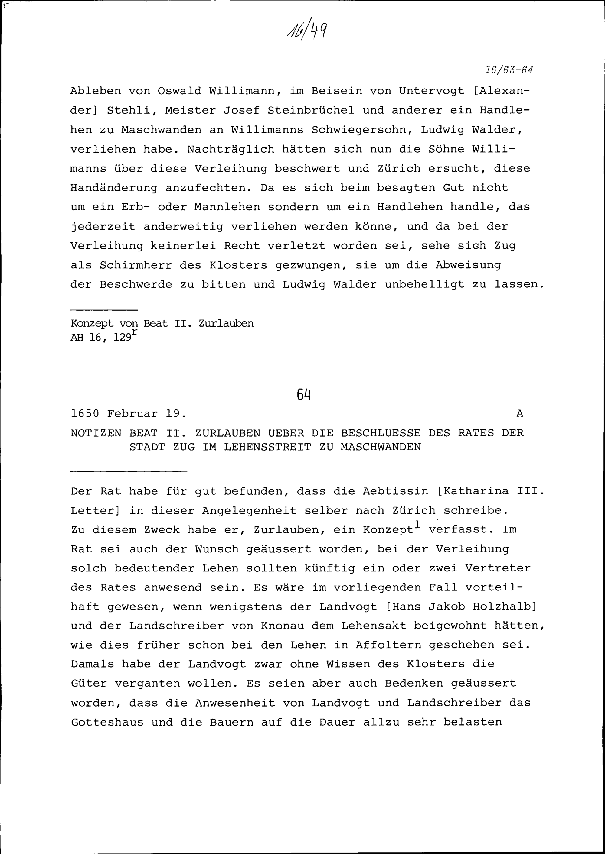 Schreiben des Ammanns und Rats der Stadt Zug an Bürgermeister und Rat der Stadt Zürich