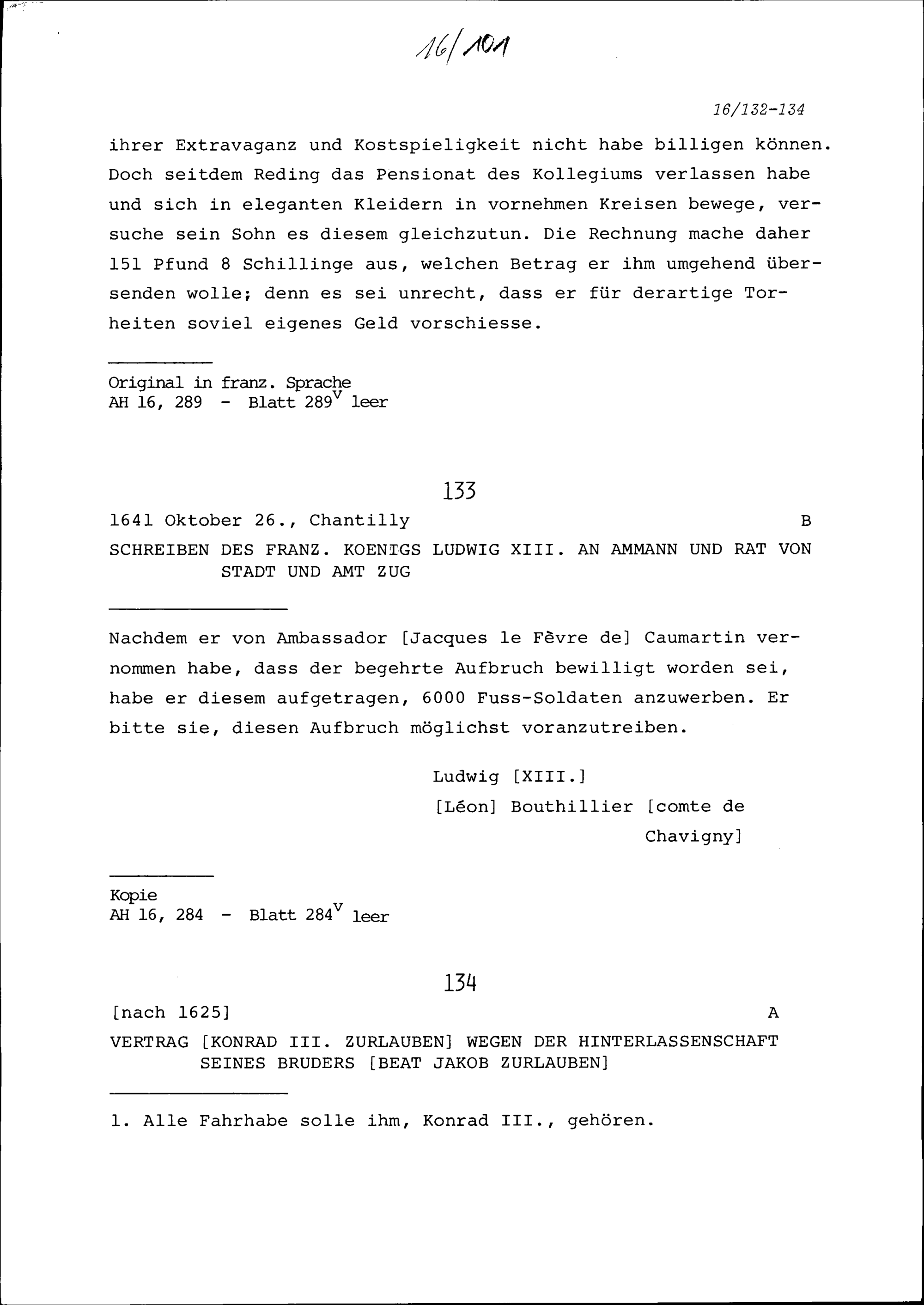 Vertrag von Konrad III. Zurlauben wegen der Hinterlassenschaft Beat Jakob Zurlauben, sein Bruder