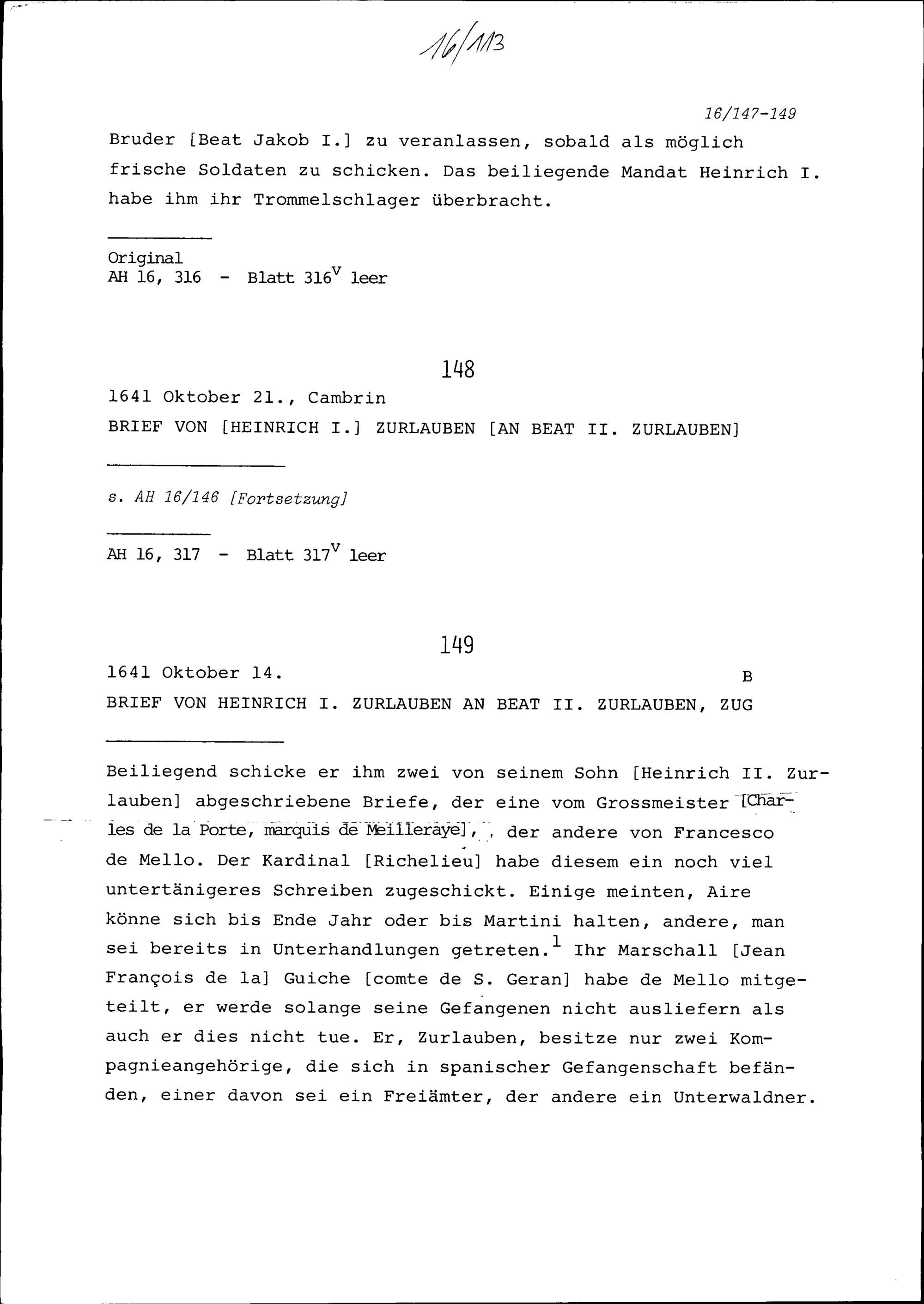 Schreiben von Heinrich I. Zurlauben an Beat II. Zurlauben, Zug