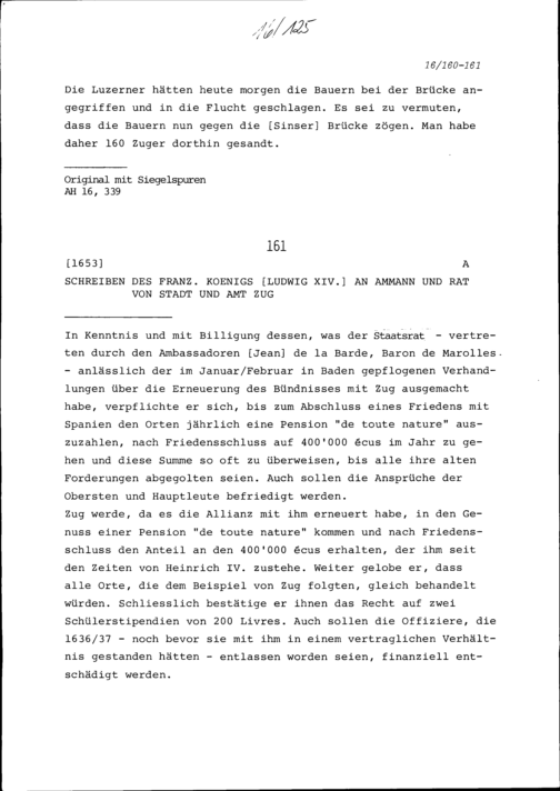 Schreiben von Beat II. Zurlauben an Beat Jakob I. Zurlauben, Bremgarten