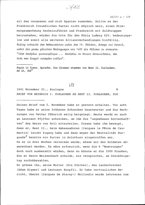 Schreiben von Jean de la Barde, Ambassador von Frankreich, an Wolf Dietrich Reding
