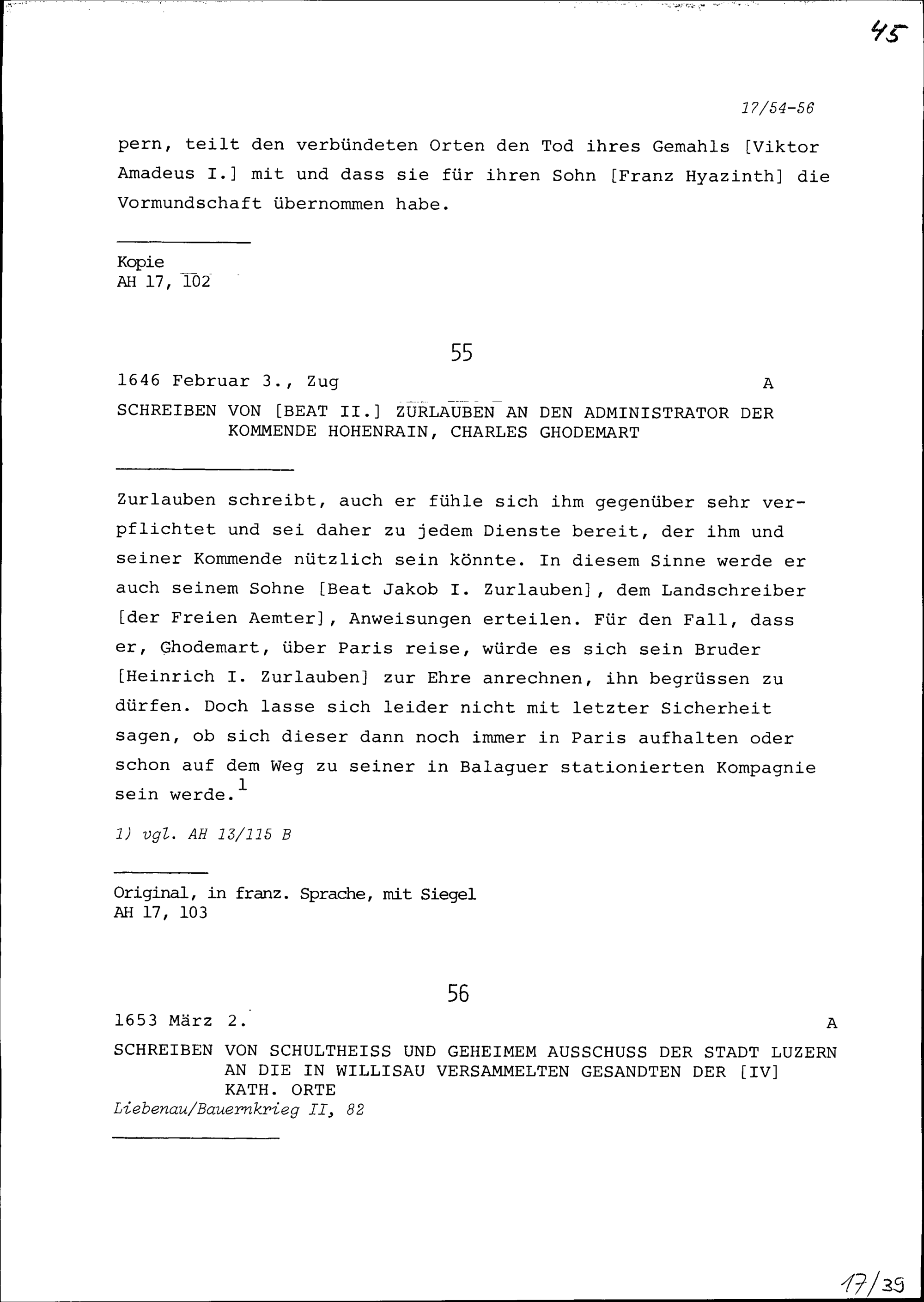 Schreiben von Christina von Frankreich, Herzogin von Savoyen, an die Sechs mit Savoyen verbündeten Katholischen Orte Luzern, Uri, Schwyz, Unterwalden (Ob- und Nidwalden), Zug und Freiburg