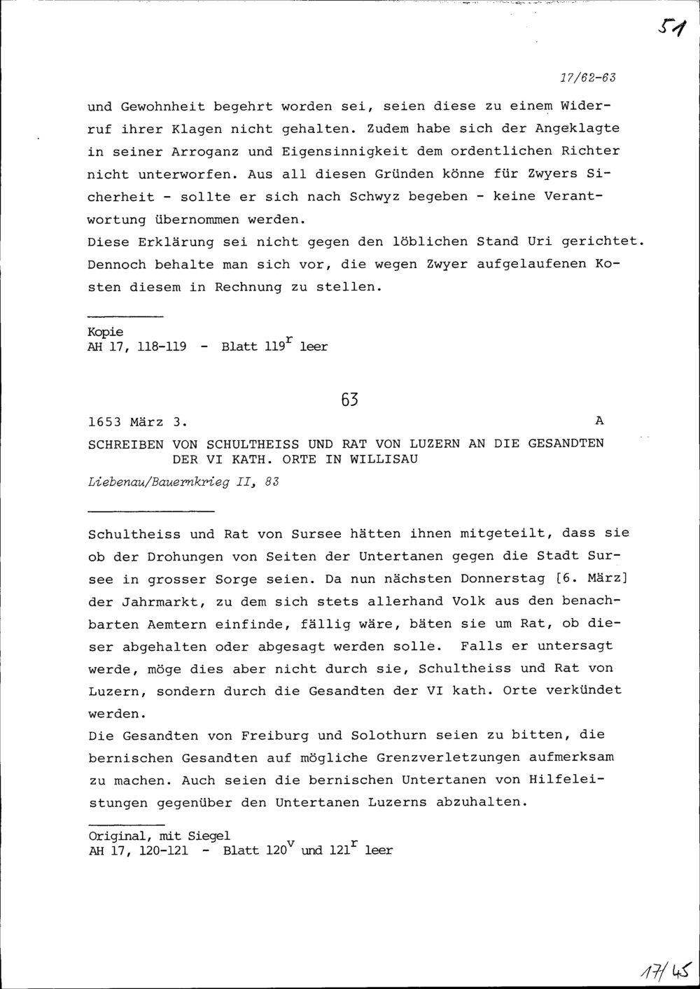 Erklärung des Landammanns und Rats von Schwyz über Sebastian Peregrin Zwyer