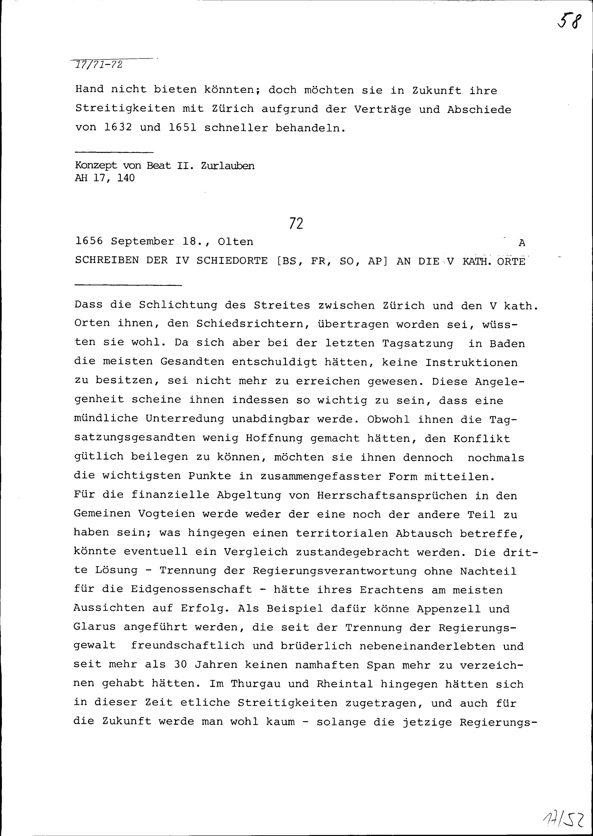 Schreiben der Fünf Katholischen Orte an die Gesandten der Schiedsorte Basel, Freiburg, Solothurn und Appenzell