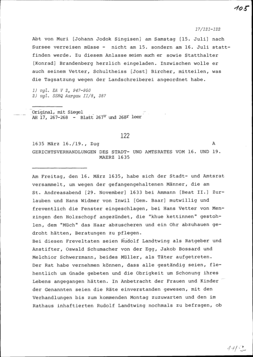 Schreiben von Jakob Bircher, Landvogt der Freien Ämter, an Beat II. Zurlauben, Zug