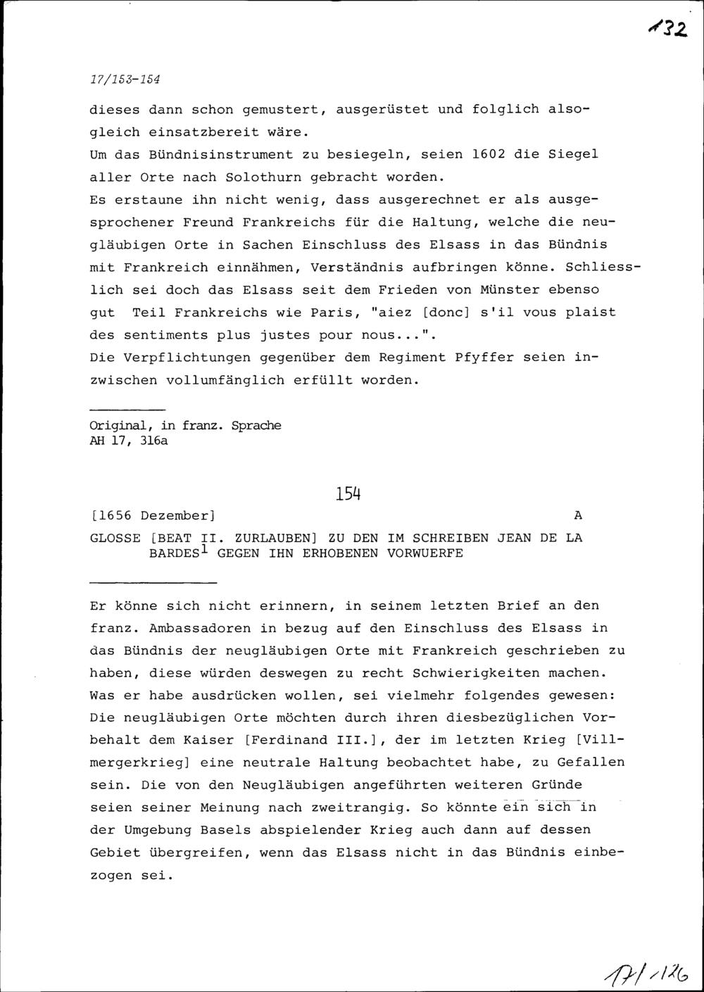 Schreiben von Jean de la Barde, Ambassador von Frankreich, an Beat II. Zurlauben