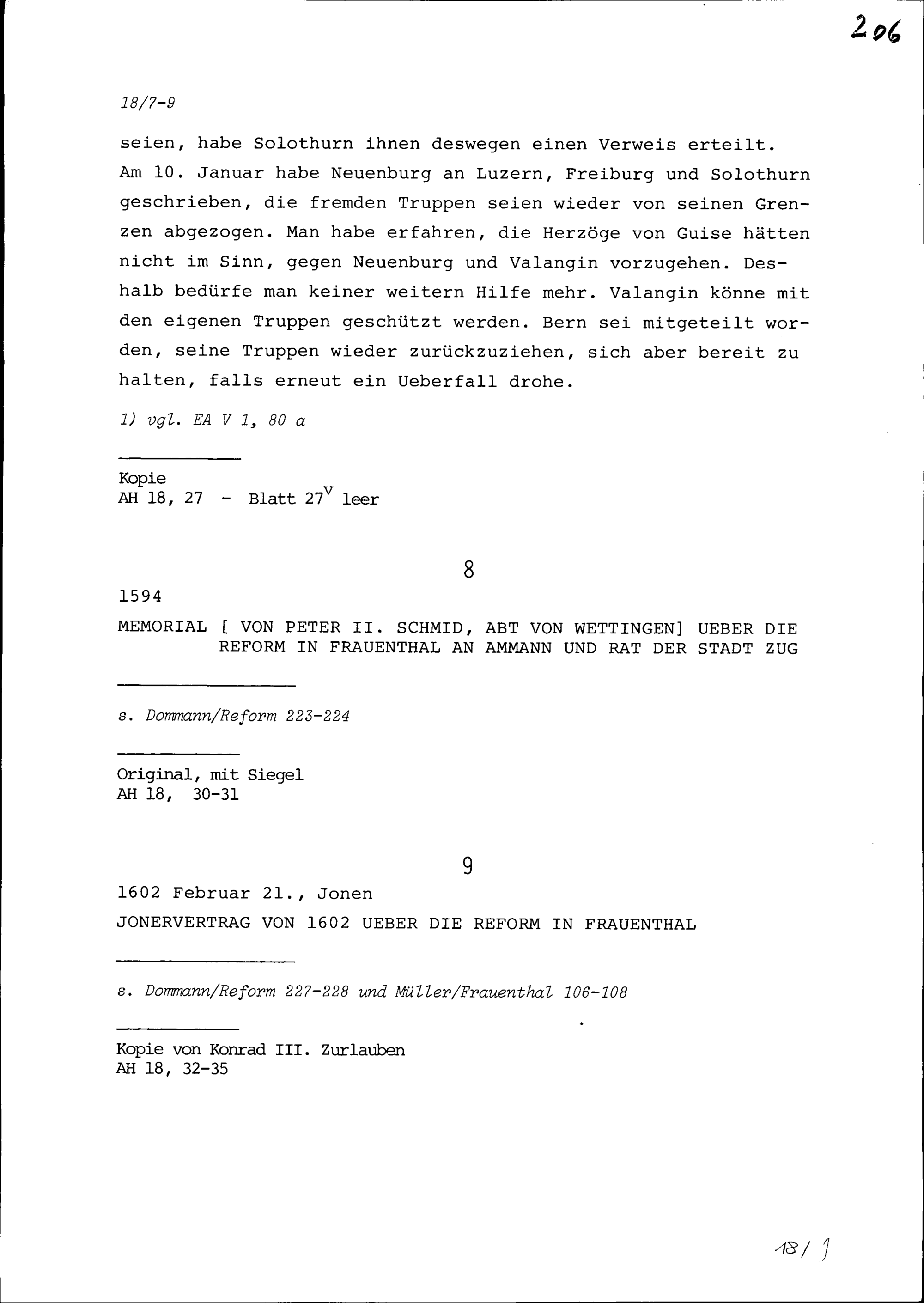 Jonervertrag von 1602 über die Reform im Frauenkloster Frauenthal