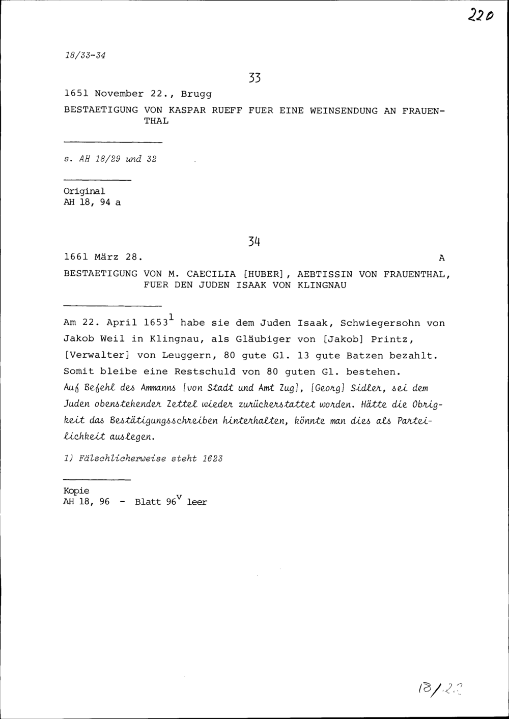Bestätigung von Maria Cäcilia Huber, Äbtissin von Frauenthal, für Isaak von Klingnau, Jude