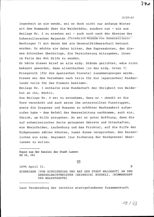 Schreiben von Heinrich Bürkli, Generalwachtmeister in kaiserlichen Diensten, an Bürgermeister...