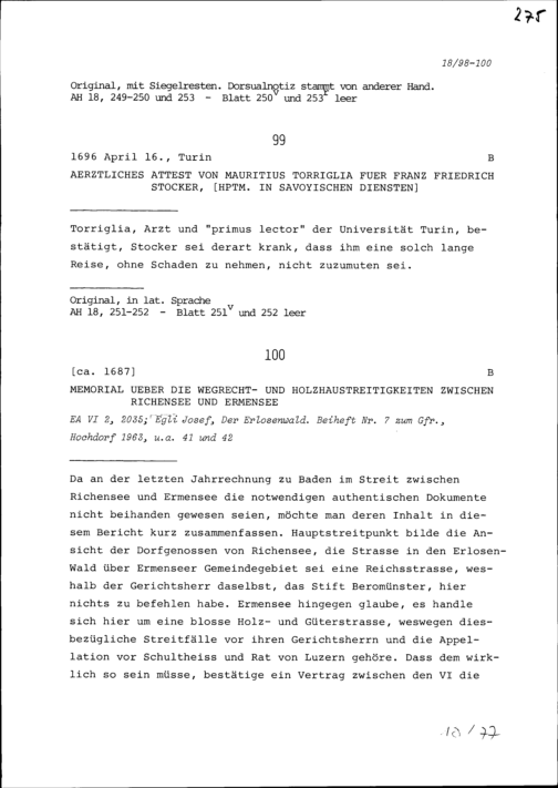 Schreiben von Franz Friedrich Stocker, Hauptmann in savoyischen Diensten, an Ammann...