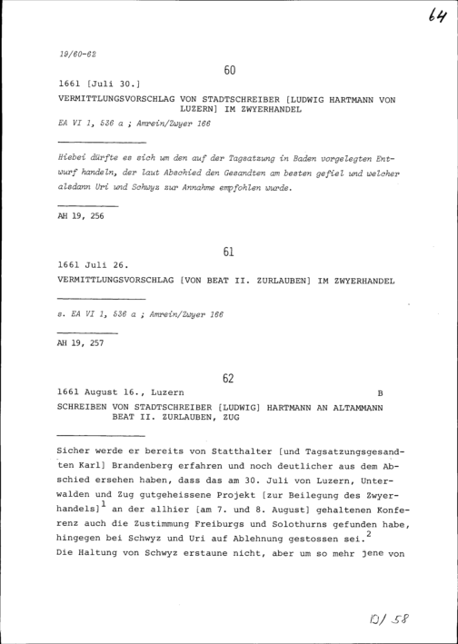 Schreiben von Ludwig Hartmann, Stadtschreiber, an Beat II. Zurlauben, Altammann,...
