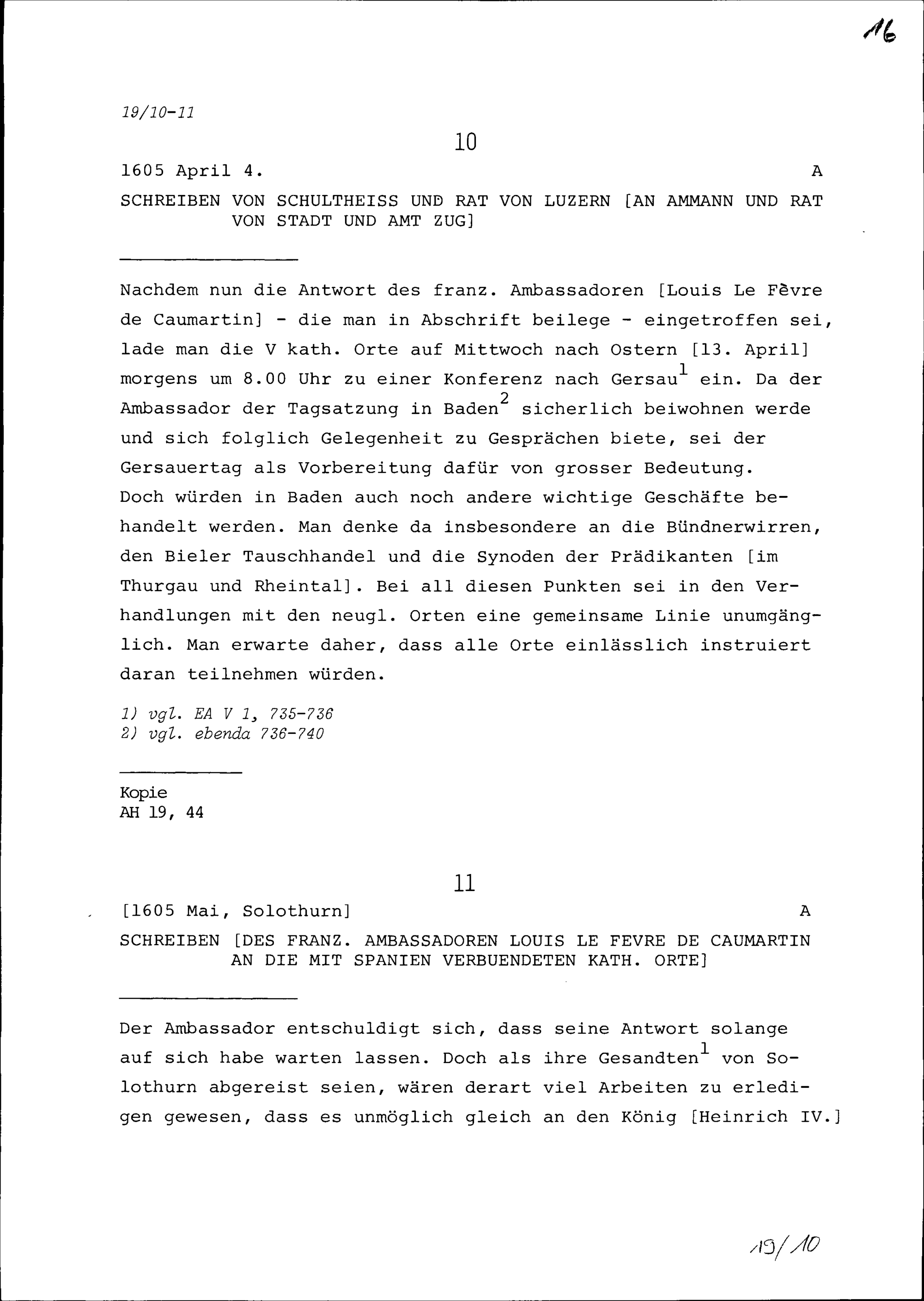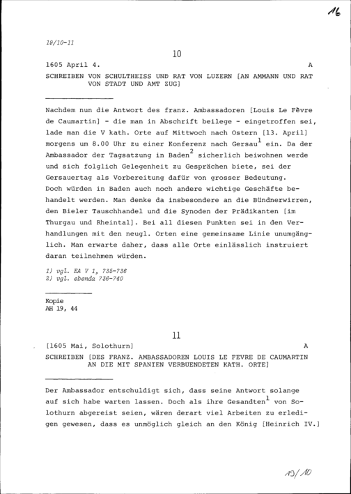 Schreiben von Louis Le Fèvre de Caumartin, Ambassador von Frankreich, an die mit Spanien verbündeten Katholischen Orte