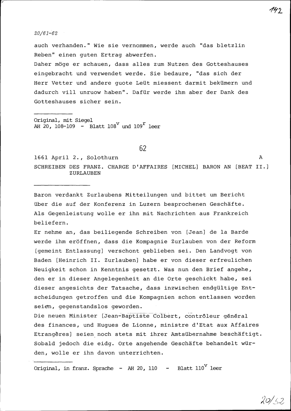 Schreiben von Maria Katharina III. Letter, Äbtissin, an Beat II. Zurlauben, Ammann, Zug