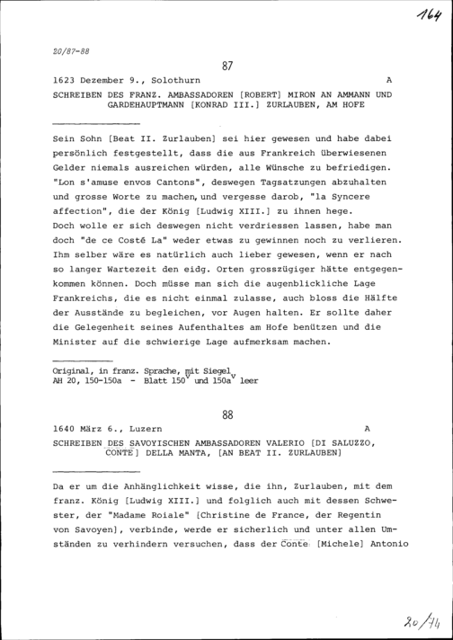 Schreiben von Valerio di Saluzzo, Conte della Manta, Ambassador von Savoyen, an Beat II. Zurlauben