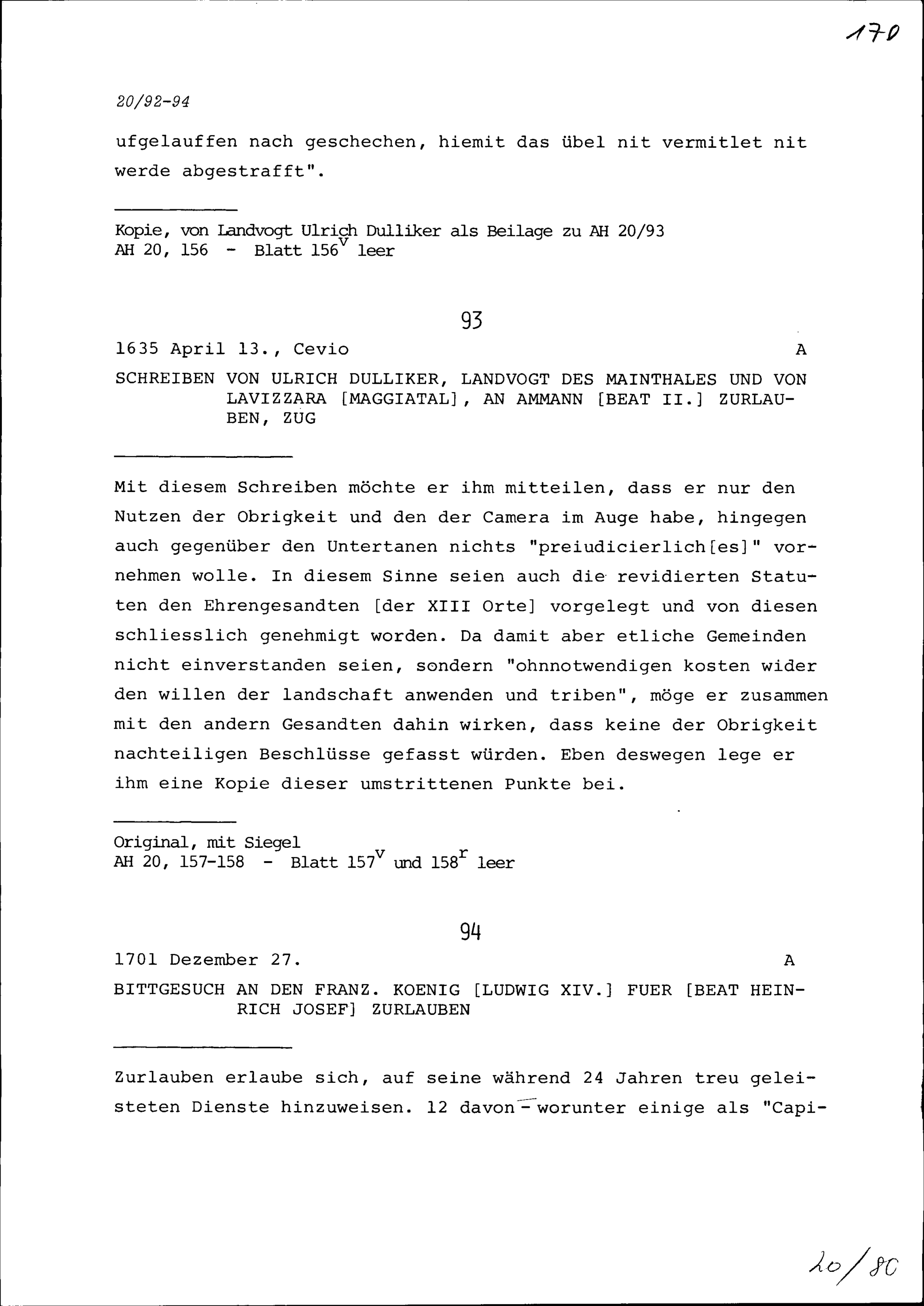 Bittgesuch an Ludwig XIV., König von Frankreich, für Beat Heinrich Josef Zurlaub...