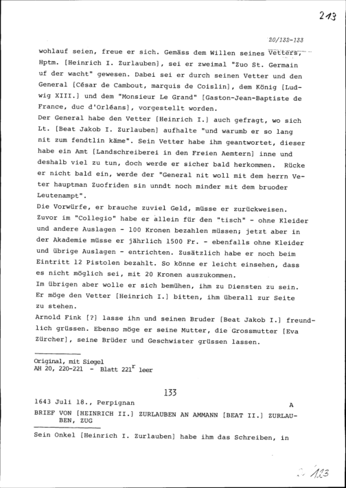 Schreiben von Heinrich II. Zurlauben an Beat II. Zurlauben, Ammann, Zug