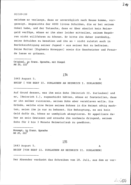 Schreiben von Heinrich II. Zurlauben an Beat II. Zurlauben, Ammann, Zug