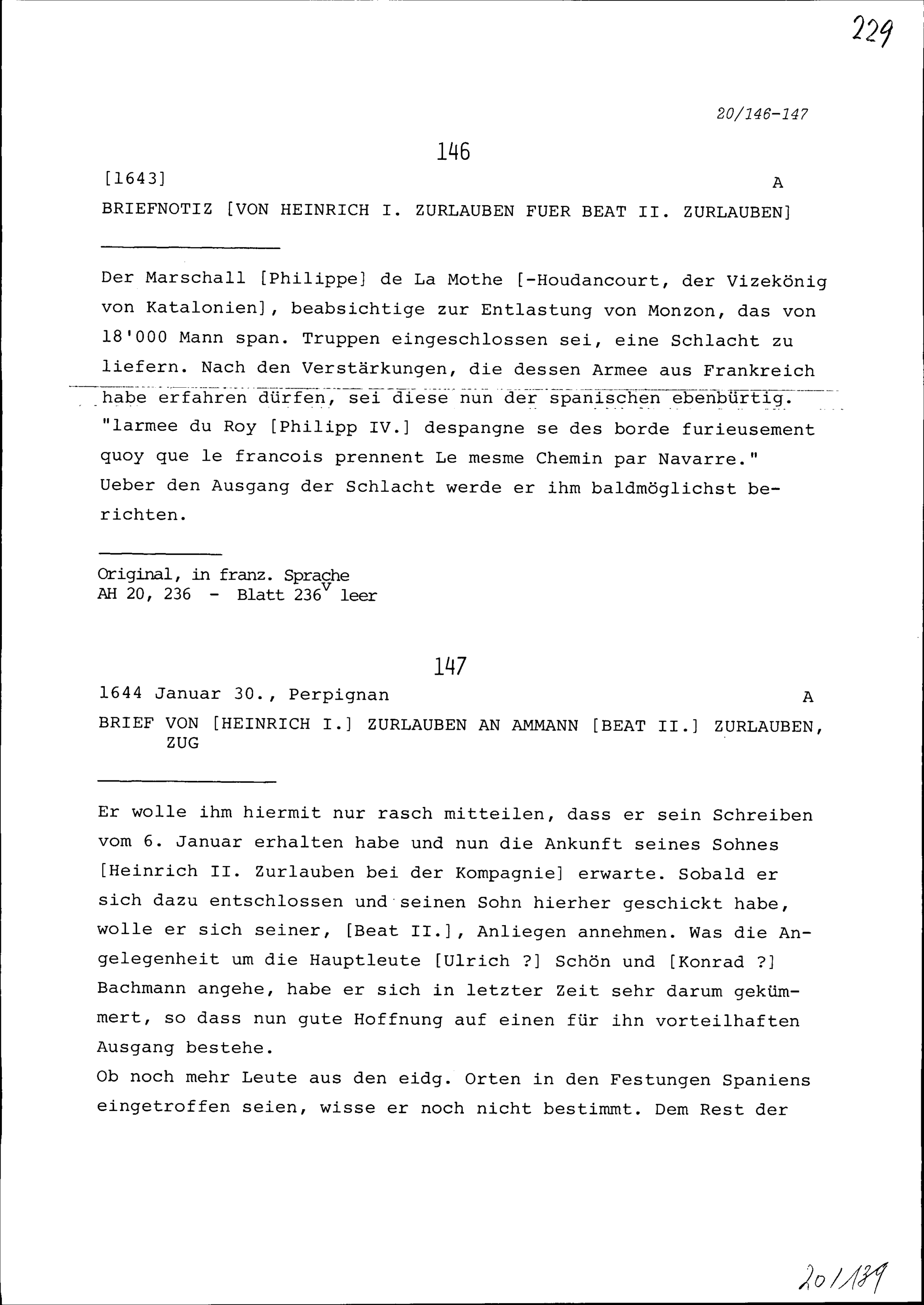 Schreiben von Heinrich I. Zurlauben an Beat II. Zurlauben, Ammann