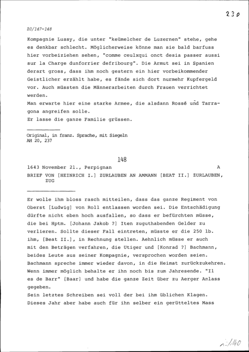 Schreiben von Heinrich I. Zurlauben an Beat II. Zurlauben, Ammann