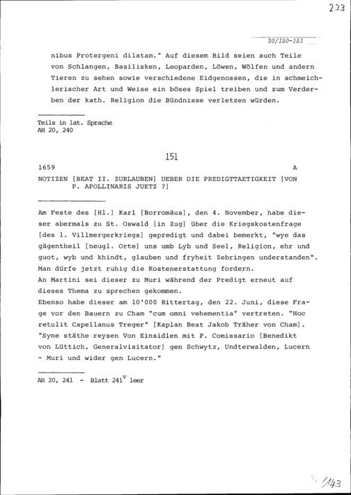 Notiz über Predigten, die in Einsiedeln gehalten wurden