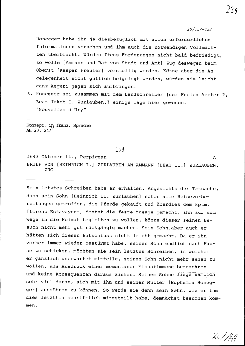 Schreiben von Beat II. Zurlauben an Heinrich I. Zurlauben