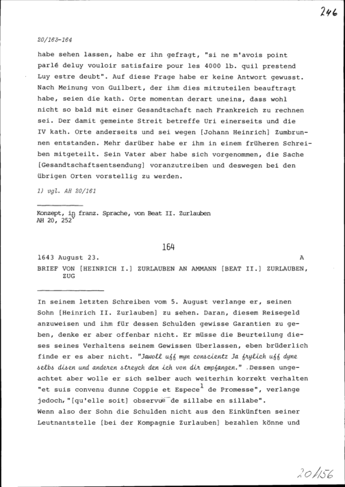 Schreiben von Heinrich II. Zurlauben an Heinrich I. Zurlauben
