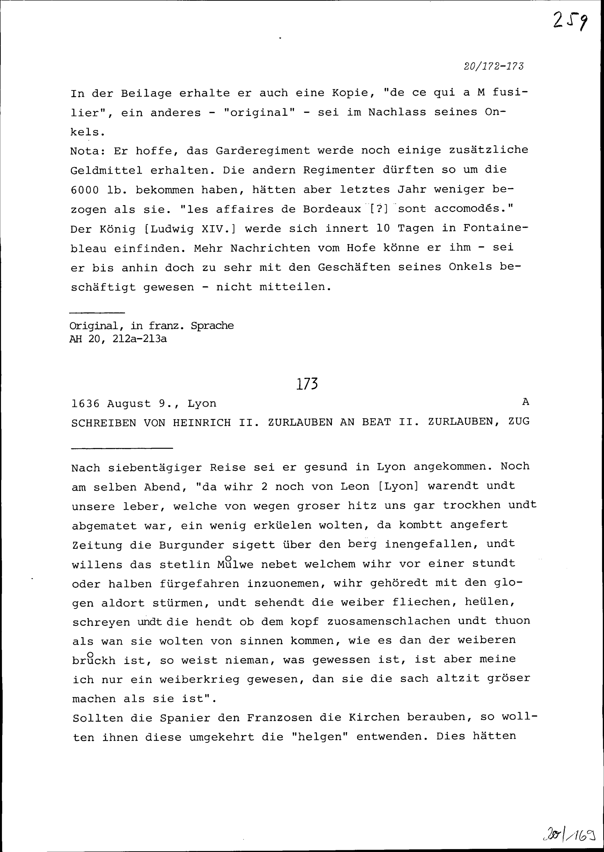 Schreiben von Heinrich II. Zurlauben an Beat II. Zurlauben, Ammann, Zug