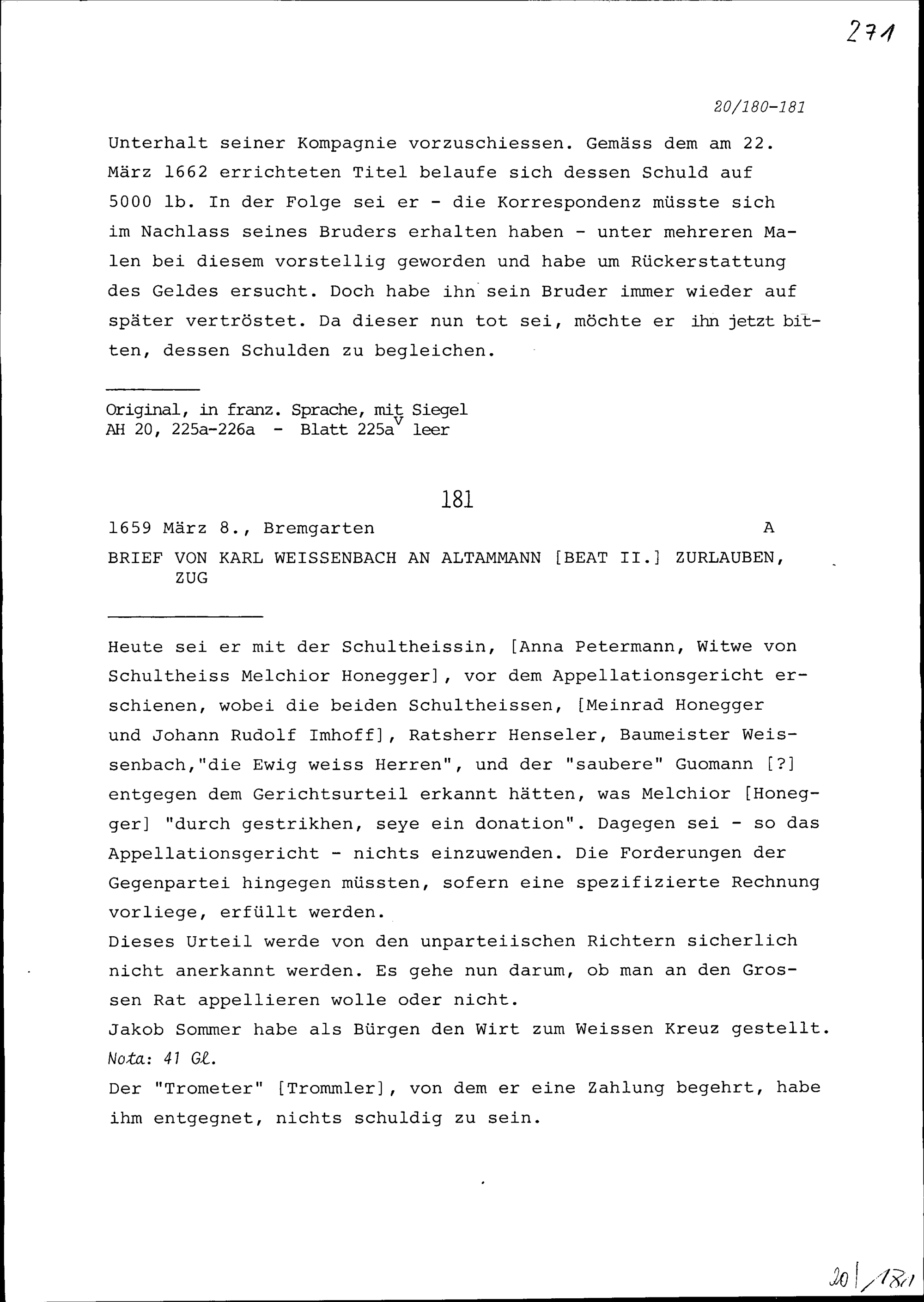 Schreiben von Heinrich von Schauenstein an Beat Jakob I. Zurlauben, Statthalter, Zug