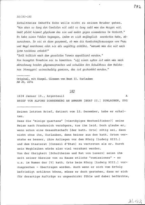 Schreiben von Karl Weissenbach an Beat II. Zurlauben, Altammann, Zug