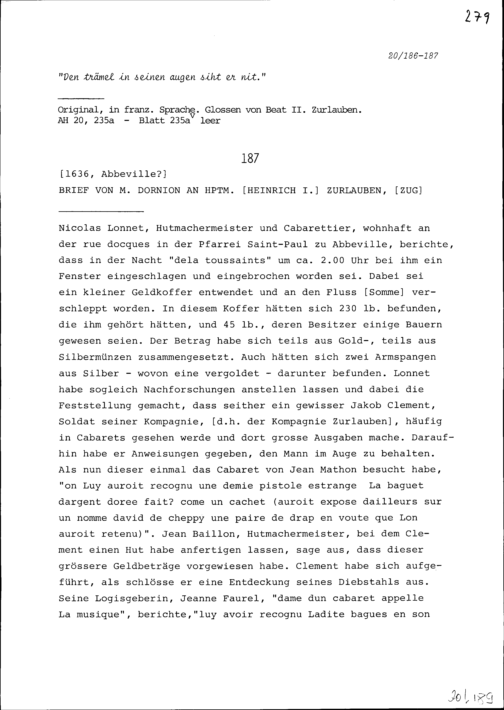 Schreiben von Heinrich I. Zurlauben an Beat Jakob I. Zurlauben