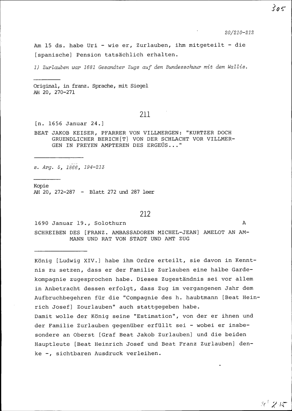 Schreiben von Michel-Jean Amelot, Ambassador von Frankreich, an Ammann und Rat von Stadt und Amt Zug