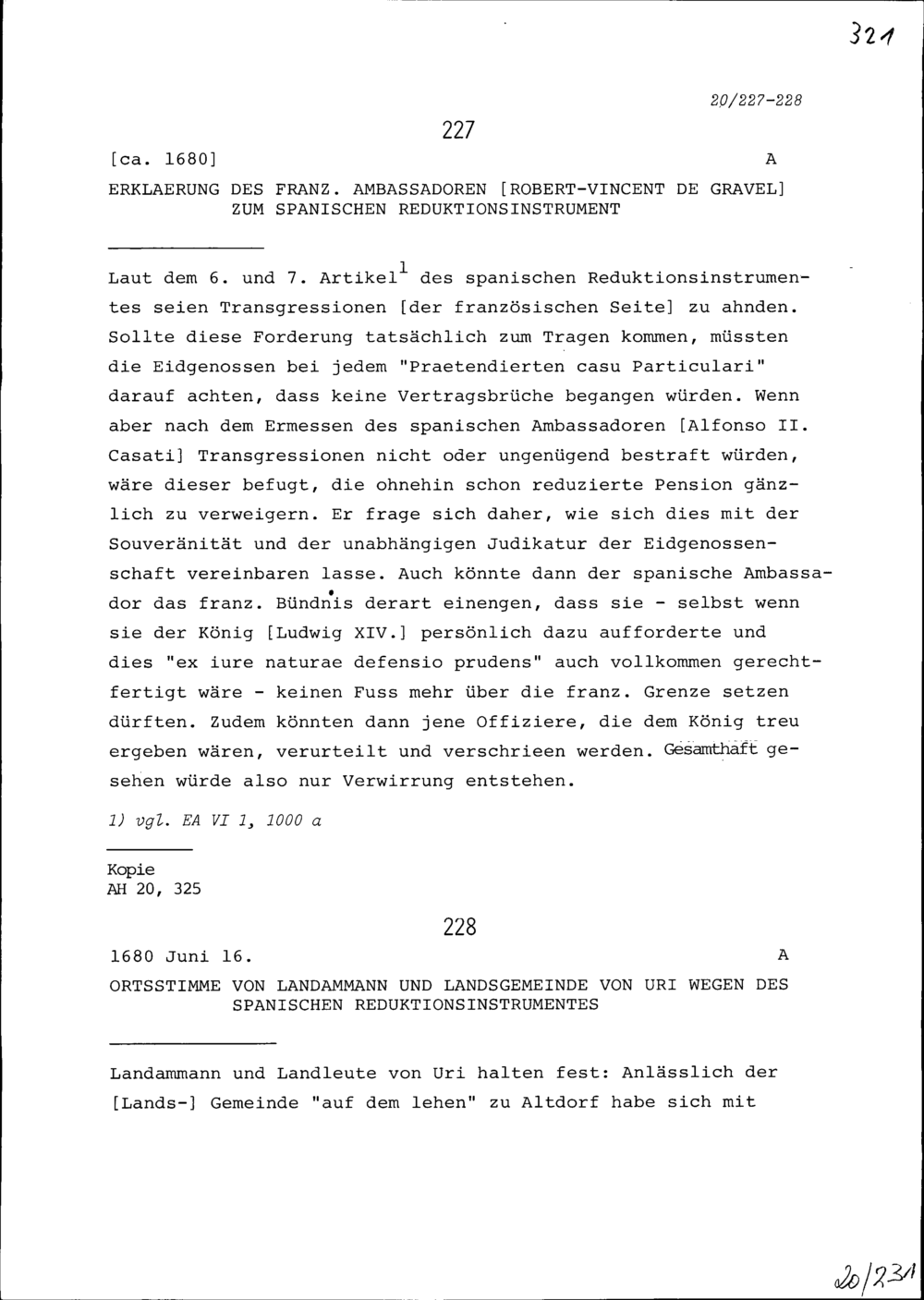 Ortsstimme des Landammanns und der Landsgemeinde von Uri wegen des spanischen Reduktionsinstruments