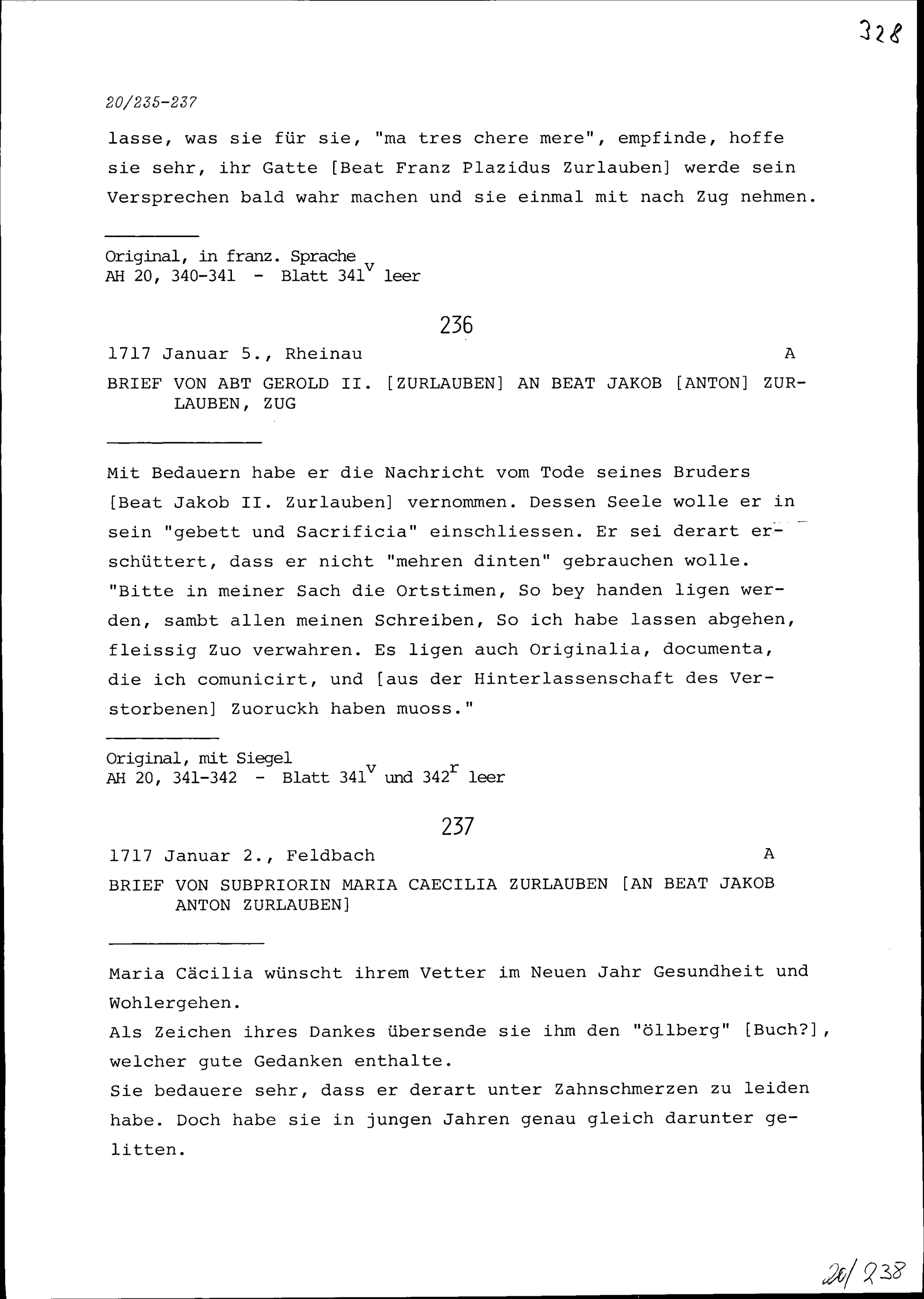 Schreiben von Maria Cäcilia Zurlauben, Subpriorin, an Beat Jakob Anton Zurlauben