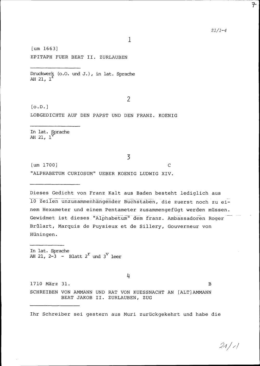Schreiben des Ammanns und Rats von Küssnacht an Beat Jakob II. Zurlauben, Altammann, Zug