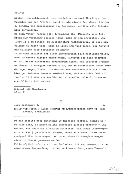 Schreiben von Jakob Wickart, Hauptmann, an Beat II. Zurlauben, Landschreiber, Br...